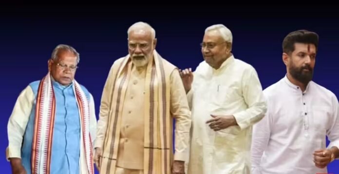बिहार विधानसभा चुनाव 2025 के मद्देनजर आज दिल्ली में राष्ट्रीय जनतांत्रिक गठबंधन (एनडीए) में सीट बंटवारा अंतिम रूप दे दिया गया। इस फैसले के अनुसार, बीजेपी और जेडीयू ने बराबर-बराबर सीटों पर चुनाव लड़ने का फैसला किया है। बीजेपी को 101 सीटें मिली हैं, वहीँ नीतीश कुमार की जेडीयू को भी 101 सीटें दी गई हैं। इसके अलावा चिराग पासवान की पार्टी लोजपा रामविलास को 29 सीटें, जीतन राम मांझी की पार्टी हम को 6 सीटें और उपेंद्र कुशवाहा की पार्टी RLM को 6 सीटें मिली हैं।