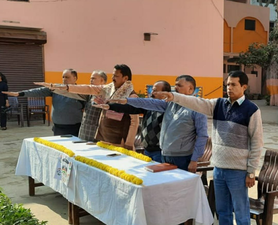 संविधान दिवस के मौके पर कार्यक्रम में पहुंचे श्याम सुन्दर अग्रवाल आचार्य सुशील पांचाल ने सबको संविधान की शपथ दिलाई